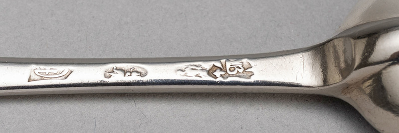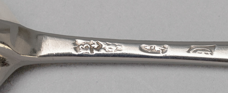 Description: A lovely Queen Anne Dognose (also called wavy end) spoon in Brittania silver. The Dognose was popular during the Queen Anne period, and the transition between the earlier Trefid and later Hanoverian can clearly be seen. This spoon is clearly engraved "S*B" on the back of the spoon, which is correct as spoons were placed bowl down on the table at this time. The S*B mark of the original owners probably signifies a betrothal. The spoon has a very pronounced rat-tail, and is quite good quality, this spoon has a nice feel. The makers mark Br above fleur de lys in shaped shield is very clear, this is Grimwade mark 209, the mark is clearly struck, but given the narrow spoon handle only a portion of the r is cisible. The remaining 3 marks are squashed (the stem was shaped after the hallmarks were struck) and partially worn, but still legible enough to see Brittania, Lions head erased and date letter for 1712. John Broake was freed in 1699 and worked until 1712, he was a specialist spoonmaker. A marrow scoop made by John Broake, also in 1712, is depicted in the book "Investing in Silver" by Eric Delieb, page 25, this same scoop is now available at www.theoldcorkscrew.co.za, a shop we highly recommend. Note - We have a matching spoon S 11606.