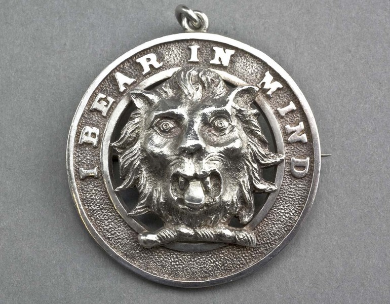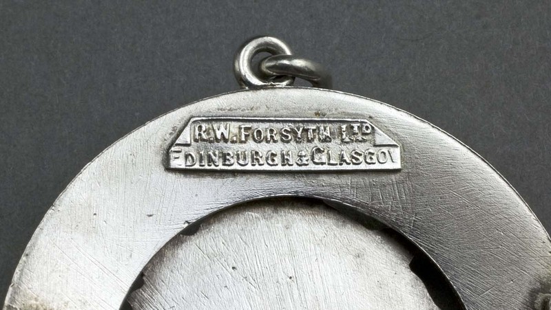 Description: A Scottish silver clan badge, which can be worn as a pendant or as a brooch or kilt sash pin. The badge comprises a "Lions Head Effrontee" (looking forward) with the motto "I Bear in Mind". This is the crest and motto of the Campbell clan of Barbreck. The Campbells are one of the most powerful clans of Scotland, descendants of King Robert Bruce. The Campbells of Barbreck are from the Argyll district. The badge is very good quality, the lion is cast and has lovely detail, it stands out from the badge. It is a pleasing weight, and hangs well from a chain. The hallmarks are clear, and include makers mark RWF. The badge also has a silver plaque which reads " R.W. Forsyth Ltd, Edinburgh & Glasgow". R.W. Forsyth was a leading Scottish department store from 1897 until the 1980's.