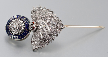 Royal Fusiliers City of London Regiment Diamond, Platinum, Gold and Enamel Sweetheart Brooch - scale