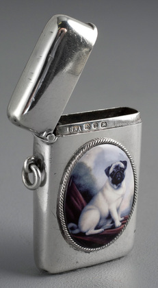 | Victorian Silver and Enamel Vesta Case - Pug, Dog Vesta