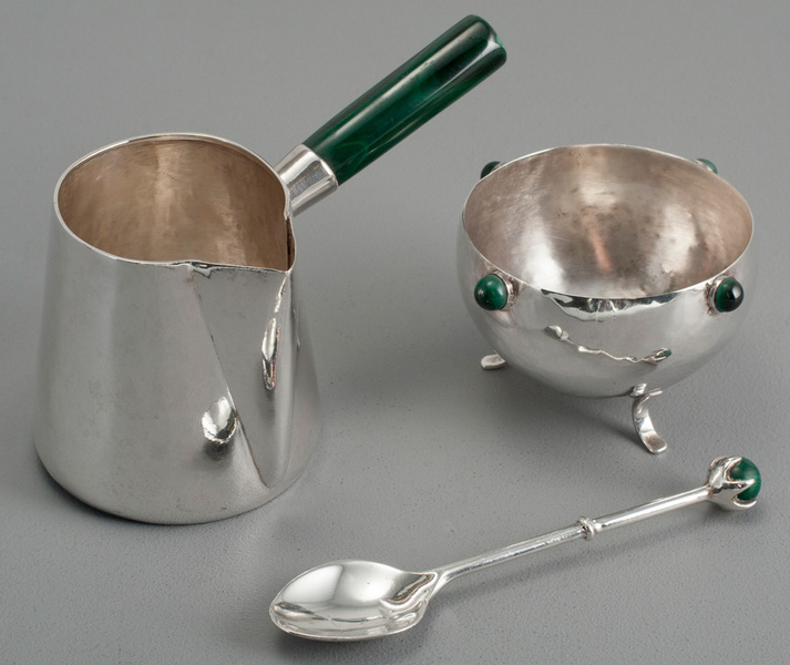 Zambian sterling silver malachite jug, bowl, spoon - klaus rygaard