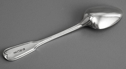 Description: An extremely rare Cape silver dessert spoon in the Fiddle Thread without Shoulders pattern, to our knowledge Cape silver in this pattern is unknown, we have not encountered it before and cannot find an example in any of the known literature. The spoon is double struck (pattern on both sides), and has a single thread, but notably without the usual shoulder where the bowl joins the handle. The spoon also has a long drop, slightly different from it's matching partner, showing this spoon was hand made. The spoon is lovely quality, a pleasing weight, and in excellent condition. The hallmarks are excellent, a variant of mark 138 in Welz, Castle, date letter C, and Georgian duty mark, with makers mark LT, all well struck. We have a matching spoon, S 11120.
