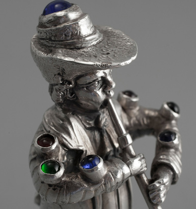 Hanau Silver Bejewelled Cabochon Musician - 13 Loth, Trumpet Player