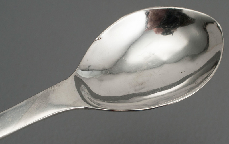 Description: An interesting silver spoon, made by the Leeds College of Art in 1953, to commemorate the coronation of Queen Elizabeth II in 1953. The spoon is teaspoon size, has a curvilinear handle and is struck with a large coronation mark as key decoration on the front of the spoon, this was an optional hallmark. The spoon is clearly hand made, the bowl and drop a little wonky, so perhaps made by an apprentice. The hallmarks are clear, including makers mark LCA for Leeds College of Art. Leeds College of Art, which still exists today, had a good reputation for silver in the 1950's and early 1960's (Source Designer British Silver, Andrew & Styles, page 372). Silver by Leeds College of Arts is scarce, occasional pieces assayed at Sheffield with the LCA sponsors mark appear on the secondary market (we have seen a few examples on the internet, spoons, beakers and a gravy boat). In addition to being a rare Leeds College of Art piece of silver, the use of the large optional coronation hallmark as decoration is also unusual. During the time this spoon was made, "Alann Fisher, a very accomplished Sheffield trained silversmith was in overall charge of the silversmithing class" - Source as above. Fisher made a bowl and cover in 1949 which is in the Pearson collection (www.pearsonsilvercollection.com), this has the LCA sponsors mark. Don Porritt, one of the 50 leading silversmiths featured in the book "British Designer Silver", was a student of Leeds College of Art under Fisher at this time, he describes his time at LCA as "the best time of my life, Leeds was buzzing, I was not the same person at the end of the course"-"British Designer Silver" page 374. Porritt went on to lecture at LCA UNTIL 1992, he also won 5 awards. His distinctive style is curvilinear, so we postulated that "it is not impossible to imagine that Don Porritt made this spoon". We have now received correspondence from Don confirming he did not make this spoon, it could have been made by any of the staff or students at LCA at the time.