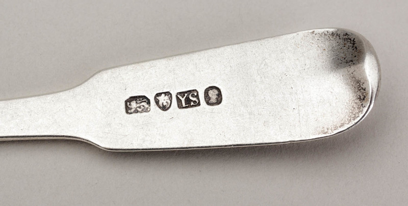 Description: A Chinese Export silver dessertspoon in the Fiddle pattern, with very clear pseudo hallmarks. The spoon has original engraved initials (now worn), and has been well used. The hallmarks include pseudo lion passant, pseudo crowned leopard's head town mark, makers mark YS and pseudo duty mark, these marks are very clearly struck, but show wear to the punches from prolonged use. The website www.chineseexportsilver.com also notes that "Yatshing silver is always of a high standard", and the book "Chinese Export Silver describes Yatshing as "quite prolific".