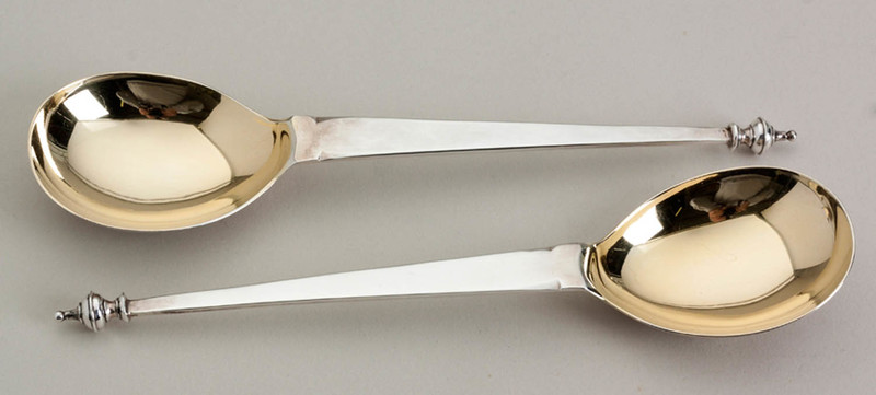 Baluster or urn finial, sterling silver spoons
