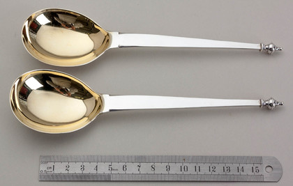 | Sterling Silver Baluster Gilded Serving Spoons (Pair) - Mappin & Webb