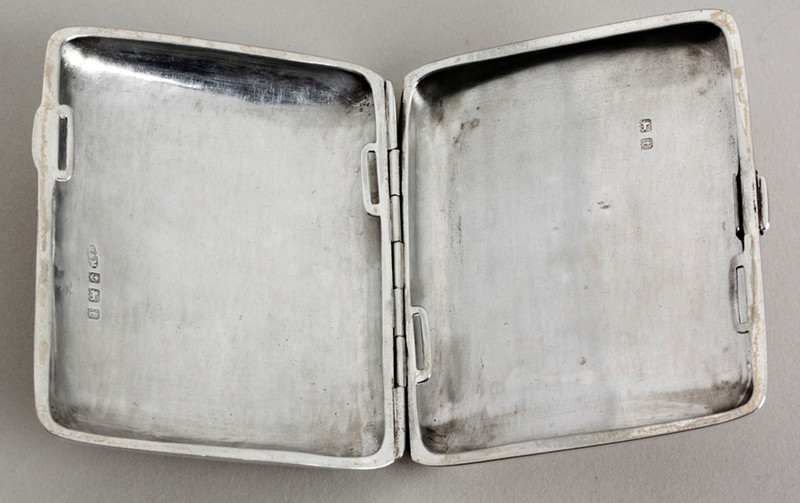 Description: A antique silver cigarette case, presented to a South African World War I soldier who won the Military Medal for bravery displayed at Menin Road. The inscription reads "Pte. J.J. Cronje, M.M. 4 SAI, From the Ladies of the Riversdale Red + Soc:, In Appreciation of Bravery Displayed at Menin Road, June 10th 1919". Private Cronje was part of the 4th South African Infantry Regiment, part of the larger South African Brigade, best remembered for their role in the Battle of Delville Wood in 1916, but with battle honours for Egypt, Somme, Delville Wood, Arras, Ypres, Menin Road, Cambrai, Mons and Flanders. The 4th SAI was known as the "South African Scottish", as it was raised from the Cape Town Highlanders and Transvaal Scottish Regiments, with additional recruits from Caledonian societies. Riversdale is a small farming town in the Western Cape province, en route between Cape Town and the Garden Route. We assume for the inscription it was Cronje's home town, and that the ladies of the local Red Cross Society arranged this gift. The hallmarks are clear on both parts of the case.