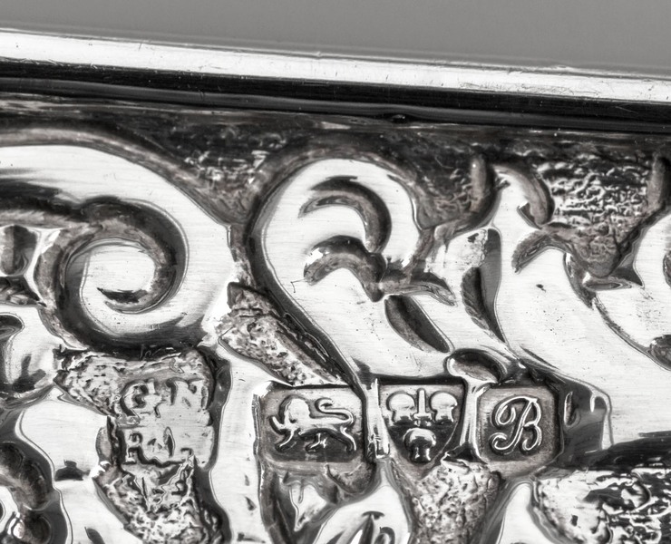 Antique silver hallmarks hidden in decoration