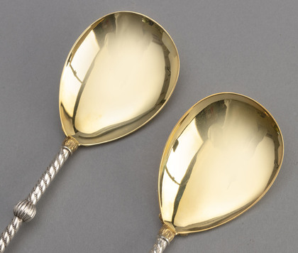 Price: $ 1 450.00 Weight: 226 grams Dimensions: 22.7 cm, ladle 14.4 cm Condition: Excellent, but the 2 spoon bowls have been re-gilded, this has been well done. The sifter ladle is in perfect original condition.