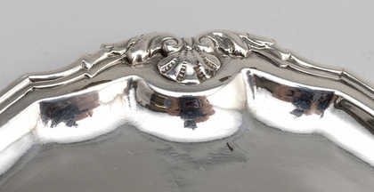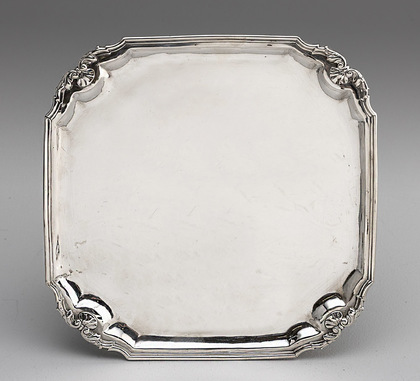 Description: An 18th century Dutch silver salver, in the Louis XIV style, made by Gregorius van der Toorn in The Hague (Den Haag) in 1738. The salver is of almost square form, with moulded shaped corners with shell and scroll decoration and a stepped border, and sits on 4 curved shaped feet. An almost identical shell and scroll salver decoration is depicted in the book "Dutch Silver" by M.H. Gans, page 47, where this style of decoration is dated to 1730. The salver has 4 clear hallmarks, including makers mark G.T in oval punch for Gregorius van der Toorn, this mark is very clear, even showing detail of the indented font at the top of the G and T. The remaining hallmarks include crowned lion rampant Holland standard mark (fineness 934), The Hague (Den Haag or S Gravenhage) city mark (stork holding eel below coronet), this mark with slight wear on one side, and a clear date letter Q crowned for 1738. Gregorius van der Toorn was born in 1715, and became master in 1738, the year this salver was made. He died in 1771 after a long career, today he is remembered as one of the most prolific silversmiths of The Hague of the period. J.W. Frederiks, in his book "Dutch Silver vol. 2 The Hague", page 169, describes van der Toorn as "one of the best masters of The Hague, the shapes he created were beautiful and his execution faultless". Two beautiful examples of his work are shown in the book "Nederlands Zilver Dutch Silver 1580-1830" by A.L. den Blaauwen, no. 134 a wine cooler in the Rijksmuseum, and 136 a kettle and stand from the Gemeente Museum.
