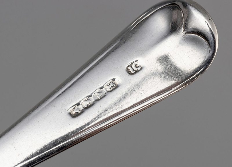 Description: A rare Cape silver tablespoon in the Old English thread pattern, we have only noted 2 examples of Cape silver in this pattern in the body of literature. The spoon is the usual Old English shape, but with a double thread around the edge, this is double struck (occurs on the front and back of the spoon). The spoon is engraved with original owners initials IM in script. The spoon is hallmarked with makers mark IC, the mark is slightly blurred, we assume the punch was worn when it was struck. The spoon is also hallmarked with the "Cape Stub", 4 pseudo - English hallmarks (lion passant, date letter, duty mark and leopard's head) struck mechanically in a fly press (see article on Cape Stub in "The Finial, 2007, and in the articles tab above), these marks have some wear but are still clearly visible. We believe this spoon was made by hand, you can see differences in how the thread has been applied. Please note our condition report, this spoon has been well used. David Heller, in his book "History of Cape Silver Vol. 1, shows 2 examples of this pattern, a spoon (Plate 50, page 124) and a fork (Plate 61, page 146). We have a matching pair of this spoon, see S 11485.