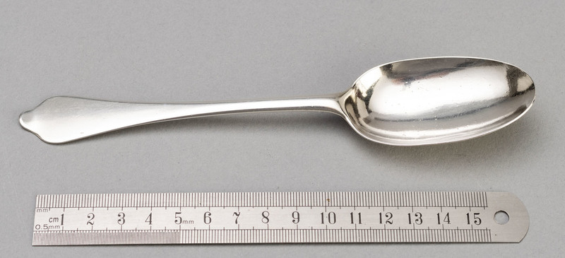 Description: A lovely Queen Anne Dognose (also called wavy end) spoon in Brittania silver. The Dognose was popular during the Queen Anne period, and the transition between the earlier Trefid and later Hanoverian can clearly be seen. This spoon is clearly engraved "S*B" on the back of the spoon, which is correct as spoons were placed bowl down on the table at this time. The S*B mark of the original owners probably signifies a betrothal. The spoon has a very pronounced rat-tail, and is quite good quality, this spoon has a nice feel. The makers mark Br above fleur de lys in shaped shield is very clear, this is Grimwade mark 209, the mark is clearly struck, but given the narrow spoon handle only a portion of the r is cisible. The remaining 3 marks are squashed (the stem was shaped after the hallmarks were struck) and partially worn, but still legible enough to see Brittania, Lions head erased and date letter for 1712. John Broake was freed in 1699 and worked until 1712, he was a specialist spoonmaker. A marrow scoop made by John Broake, also in 1712, is depicted in the book "Investing in Silver" by Eric Delieb, page 25, this same scoop is now available at www.theoldcorkscrew.co.za, a shop we highly recommend. Note - We have a matching spoon S 11606.