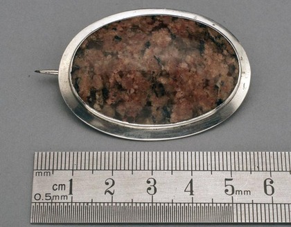 Price: $ 130.00 Weight: 17 grams Dimensions: 5.1cm * 3.5cm Condition: Good - small crack and chip in granite, probably original, does not detract. Brooch pin intact and working, slightly wobbly and loose.