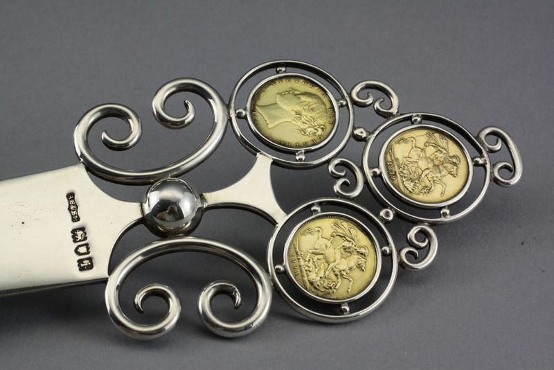 Antique Silver Letter Opener - Gold Sovereigns, 50th Wedding Anniversary
