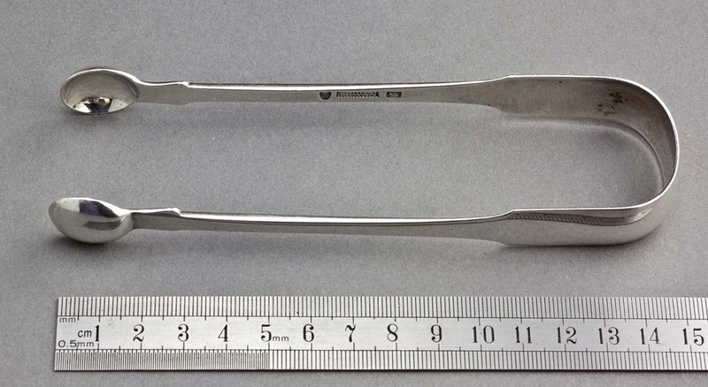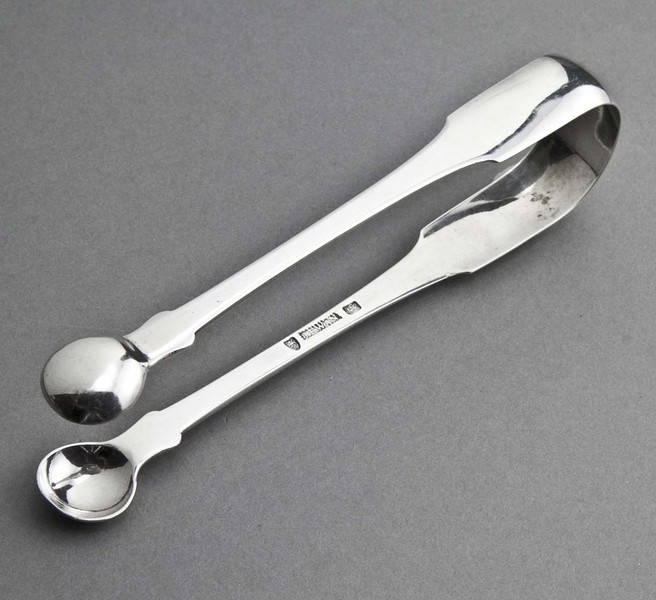Description: A rare pair of American Coin silver Fiddle pattern sugar tongs, made by John Ewan of Charleston, South Carolina, circa 1830. The tongs are plain, with no engraving, and have traditionally shaped rounded bowls. The tongs have very clear hallmarks on both arms, makers mark "J Ewan" in serrated rectangle, and pseudo English crowned leopards head and lion passant (both very quaint!). John Ewan lived between 1786 and 1852, he is believed to have produced silver between 1823 and 1852 (Ensko, American Silversmiths and their Marks, pg 294). Of interest is that these hallmarks are depicted in Wyler (The Book of Old Silver), where he incorrectly describes them as Jamaican (pg 207). Coin silver is the term used to describe silver produced in America from early Colonial times until just after the Civil war, when the Sterling standard was adopted. As the name describes, the source was European silver coins, which were melted down. Note - These hallmarks are depicted in a very interesting article entitled "Re-Visiting Jamaican Silver Marks" by Catherine Hollan, Silver Magazine September 2025, pages 12-17, where this exact hallmark is depicted as Figure 1. Hollan confirms that Ewan had no Jamaican association, and that the original Ewan Jamaican myth started with Charles Jackson in 1921 with his book English Goldsmiths and their marks, and Louise Avery of the Metropolitan Museum hypothesizing that Ewan was a London trained silversmith who came to Charleston via Jamaica in 1930. This error was repeated by Wyler and Tardy (page 294). Jackson observed a pair of Ewan tongs in a Jamaican collection, which started the confusion. The article shows genuine Jamaican marks, look out for Alligator head, Assay masterd AD, CW & IS, and makers WD & HL.