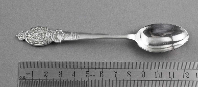 Description: An interesting silver spoon, commemorating the 7th Battalion, The Duke of Cambridge Own Middlesex Regiment. The spoon has the regimental badge, a Roman soldier with shield and sword, surrounded by the motto "Pro Rege Patria et Laribus", translated "For King, Home and Country". A laurel wreath surrounds this, and the Royal crown sits on top. The spoon also carries the motto "South Africa 1900", signifying battle honours won during the Boer War, and "1798", which commemorates the Hampstead Volunteers of 1798, the founders of the Regiment. The regiment is known as the "Die Hards", a nickname earned during the Peninsula wars at Albuera in 1811. During the Boer War they were involved in the Relief of Ladysmith, and the attack on Spioenkop. The 7th Battalion were formed in 1907, it was a volunteer Battalion, and also a "special reserve" Battalion, whose duty was supplying drafts to the 4 front line Battalions in time of need. In 1911 (the year the spoon was made, so we assume it commemorates this event), the 7th became the first Battalion in the whole Territorial force to volunteer for Imperial Service, on condition that 90% of the members agreed to serve abroad in case of necessity. The Regiment served with distinction in WWI, including Ypres and Cambrai. In 1966 they were absorbed into the Queen's Regiment. The spoon is very good quality, as you would expect from Elkington, and the hallmarks are very clear.