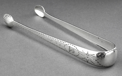 Irish Georgian Silver Bright Cut Sugar Tongs