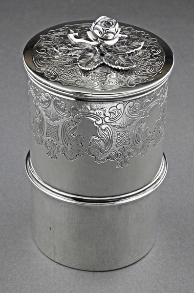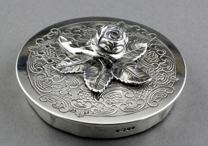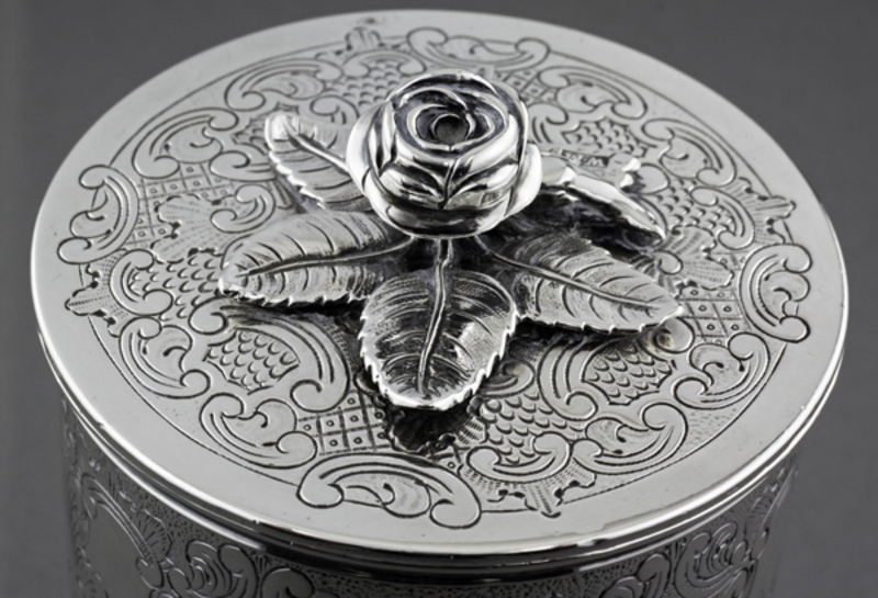 Silver rose on lid