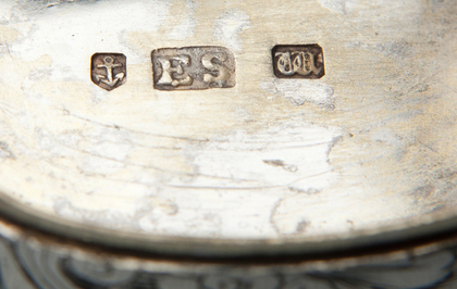 Description: Two Victorian silver vinaigrettes, both very similar in shape and design, reflecting the style of the time. Both are oval in shape with a wavy rim, concave sides, both have engine turned engraving, and both have vacant cartouche (for initials or family crest). Both also have an ornate floral grille, and both are gilded. Both also have clear hallmarks on both base and lid, the grille on the Smith example is also hallmarked. The first, by Edward Smith 1845, has an attractive snake shaped thumb piece, the base design is distinctly different from the cover design. The second still has its original sponge. Edward Smith was a specialist boxmaker, he worked between 1827 and 1865. James Cronin and Sarah & George Wheeler worked between 1846 and 1852 from St Pauls Square, Birmingham.