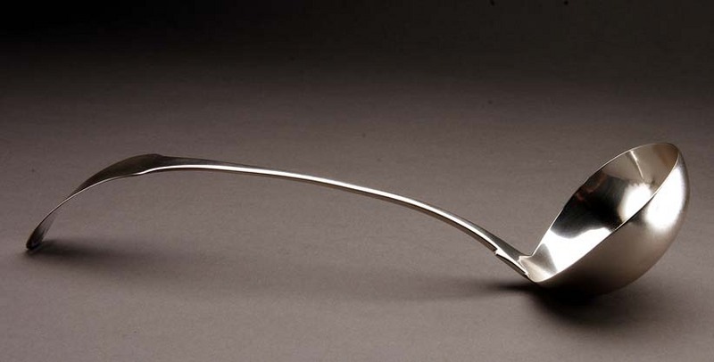 Price: $ 240.00 Weight: 190 grams Dimensions: 34cm long, bowl is huge! (9cm*11cm*3,5cm) Condition: Very good, very small dents in bowl, ladle has been highly polished.