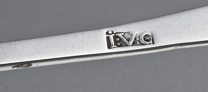 Morrison, in her book Silversmiths of the Cape of Good Hope (1936) records Christina Voigt applying for Burgher papers in 1791 for her son "a silversmith", his father arrived from Luxemburg in 1783 (page 65). Welz (Cape Silver and Silversmiths, 1976) records a 18th century teapot "with unusually large and clumsy spout" by unknown maker IVG, currently in Africana Museum, depicted on page 106. David Heller, in the book "History of Cape Silver", depicts this mark on page 164, mark AMM20, under additional makers marks, attributed to Johann Voigt?.