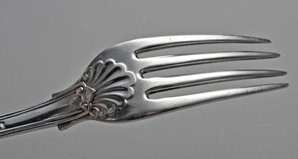 Price: $ 260.00 Weight: 116 grams Dimensions: 17.7 cm, 16.5 cm Condition: Excellent, light scratches to back of tines from use.