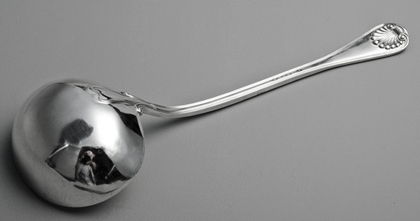 Rare Military Shell Pattern Silver Soup Ladle - Old English Military Thread & Shell
