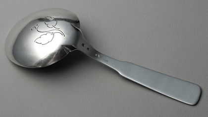 Danish Haandarbejde modernist silver strawberry serving spoon