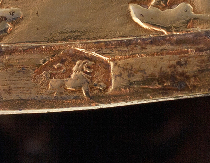 Description: An antique Dutch silver gilt vinaigrette (zilveren lodereindoosje) in the form of an armoire (kabinet). These have also been described as pomanders, scent boxes, and also incorrectly described as snuff boxes and peppermint boxes. The box has a curved shaped front, and the back panel has the impressed words "HE. DAT IS LIEF", translated He that is love", so probably presented as a love token. The armoire has frontal doors with floral decoration, and 3 drawers below, the back and side panels also have floral decoration. The lid has an oval panel with seated figure of justice holding sword and scales, surrounded by a wreath. The base is engraved with original owners initials T:V:V, the base also has a clear makers mark of AK under flower (Adrianus Kuijlenburg of Schoonhoven, 1812 -1816, see Nederlands Responsibility Marks since 1797 no 897). The lid has a Minerva head office mark (duty mark), and the box interior rim has the Lion Passant 2nd purity for 833 grade silver and date letter G for 1816. Loderein comes from the French "l'eau de reine" translated "water of the king", as only the wealthy could afford the perfumed cologne. A very similar lodereindoosje, also with HE.DAT IS LIEF, can be seen on the website www.antiekzilverhuis.nl.