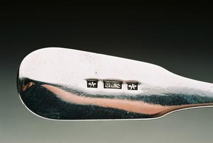Description: Plain Cape tablespoon with very clear hallmarks, showing makers initials between two Fleur de Lys.