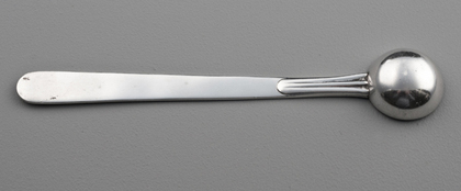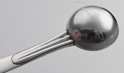 Description: A rare sterling silver cooks measuring spoon, we have not encountered one of these before. The spoon has the traditional measuring spoon shape, with circular spherical bowl and long flat handle. The spoon has an interesting triple rat-tail joining the bowl to the handle. The hallmarks are on the front of the spoon, and are well struck, they could not be better. The detail on the sterling lion passant and London town mark leopards head is fantastic, please see the photographs.