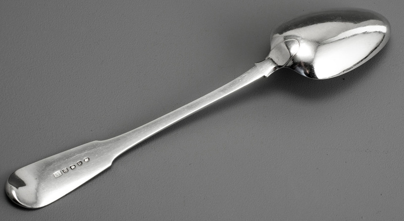 Description: A Chinese Export silver gravy straining spoon in the Fiddle pattern, also called a dividing spoon, with no engraving. The spoon, which is large serving spoon size, has a vertical divider with vertical slits in the bowl, this is fixed (some versions have removable dividers). The spoon is excellent quality, easily comparable with a top class English Georgian spoon. The hallmarks are excellent, and include pseudo duty mark, pseudo crowned leopards head (London town mark pre 1821), pseudo date letter P with cut corners, pseudo lion passant and makers mark WE WE WC. This is an imitation of the makers mark for William Eley, William Fearn and William Chawner. The style of the lettering in the makers mark is quite distinctive, the font is a little crude, distinctly different from the real Eley, Fearn & Chawner mark. The Chinese Export silver collectors guide (4th edition, pg 763-767) says this maker remains unidentified, but was responsible "for an astounding production of silver items, almost all in the European neo-classical style. The work of WE WE WC is par excellence, it can rival the best of English, European and American silversmiths of the Georgian era. There is no such thing as a poor piece of WE WE WC silver. To have the wherewithal to create silver that rivaled the finest European and American silversmiths of the Georgian era is a feat that, as yet, has not been fully comprehended. All WE WE WC items of silver should be regarded as being highly sought after, they are all potentially of museum quality". They further note that this maker is one of the most discussed since research into Chinese export Silver began.