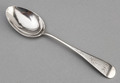 A rare Cape silver dessert spoon in the Kings pattern, made by Lawrence Twentyman. The spoon is excellent quality, as is usual for Cape silver Kings pattern, and has a very pleasing weight. The Kings pattern is double struck (on both sides), and this spoon has not been engraved. The spoon has 5 clear hallmarks, makers mark LT and 4 pseudo hallmarks, all individually struck. They include pseudo lion passant, Georgian duty mark, date letter a and crowned leopards head town mark, this is mark 135 in the book Cape Silver by Stephan Welz. Cape silver Kings pattern was only made by 2 silversmiths in the Cape, Twentyman and Fredrik Waldek, who took over Twentymans' workshops when he left the Cape for India.