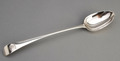 An Irish Georgian silver basting spoon, in the Fiddle pattern, with a wonderful engraved family crest of a unicorn, this engraving is very clear. The spoon is quite large, with a generous sized serving bowl. The unicorn engraved family crest can be described as "a unicorn's head, couped, maned and horned", this is the family crest of the Cunningham family (or Conyngham), we think the Irish part of the family used Conyngham, whilst their Scottish counterparts used Cunningham. The spoon has 4 hallmarks, the crowned harp, Hibernia (Dublin marks) and date letter I for 1805 are clear and well struck. We note the punch shape on these marks is cavetto, with indented corners, more usually seen in the 1820's with Dublin hallmarks, but the absence of the Duty mark confirms a date before 1807. The makers mark JP is clear, but is overstriking another mark that is no longer visible. John Power worked between 1792 and 1819, from Trinity Place, Dublin, his father and son were also silversmith.