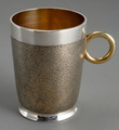 A Rare Set of 6 Liberty & Co. Japanese Sterling Silver Gilded Octopus Teaspoons, made by Sadajiro of Musashiya (Yokohama), these were amongst the first silver items imported by Arthur Lasenby Liberty for his Liberty Arts & Crafts Department store. The spoons have octopi finials, bamboo cane handles, and ormer (abalone) shell bowls, what is remarkable is that each octopus is different. The octopi have been described as "comical, scratching their heads or frowning, adding a wonderful touch of humour" - Simon Moore, Artists Spoons, page 50. The spoons are beautifully gilded, and retain much of the original gilding, their is slight wear on the handles from use. This gilding of the entire spoon is unusual, we have seen other sets without gilding and one set with gilded bowls only. The spoons are well preserved in their original wooden Liberty & Co. box, with green plush velvet interior and green leather exterior with the Liberty logo stamped in gilt lettering, it reads "Liberty & Co. Ltd. Jewellers 218a Regent St....