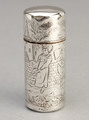 A Sampson Mordan silver scent bottle, beautifully engraved with Kate Greenaway images, a girl pulling a smaller girl in a wheeled cart, and another capped girl walking towards a gate, all in front of a brick wall, with a church with spire in the background. The bottle is clearly hallmarked on both the base and the lid. The glass bottle inside is loose and can be removed, it fits exactly into the hole, so we are not sure if it is original or a later replacement. Kate Greenaway was a Victorian artist and writer, her 1879 book "Under the Window" a collection of simple, perfectly idyllic verses about children, was a bestseller. "Kate Greenaway" children, all of them girls and boys too young to be put in trousers, were dressed in her own versions of late 18th century and Regency fashions: smock-frocks and skeleton suits for boys, high-waisted pinafores and dresses with mobcaps and straw bonnets for girls - source Wikipedia. Sampson Mordan became famous for producing high quality, innovative novelty items, many of ...